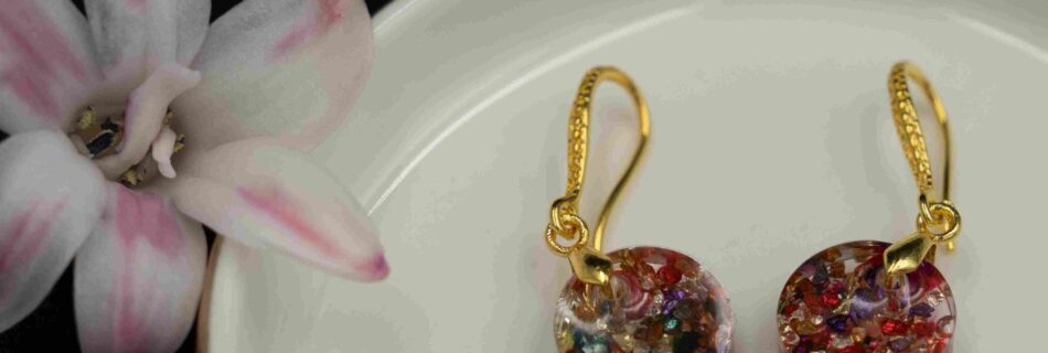 Cena: 105 PLN Numer artykułu: M20 Wymiary elementu: 1,2 x 1,2 cm Kolekcja: Multicolor Niewielkie kolczyki z transparentnej żywicy wypełnione okruszkami wielobarwnego szkła.Lekkie, kolorowe i pełne uroku — drobny akcent na co dzień. Podobne