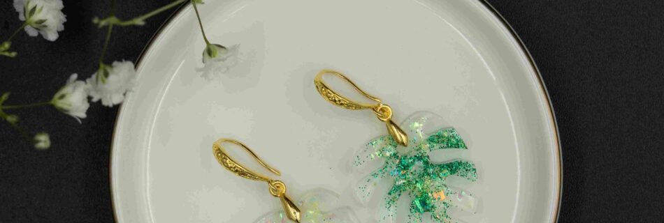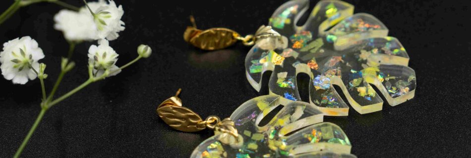 Cena: 135 PLN Numer artykułu: F10 Wymiary elementu: 3,5 x 4 cm Kolekcja: Flora Kolczyki w kształcie liści monstery z zatopioną folią w ciepłych, żółtych odcieniach.Pięknie odbijają światło, tworząc delikatną grę refleksów. Podobne