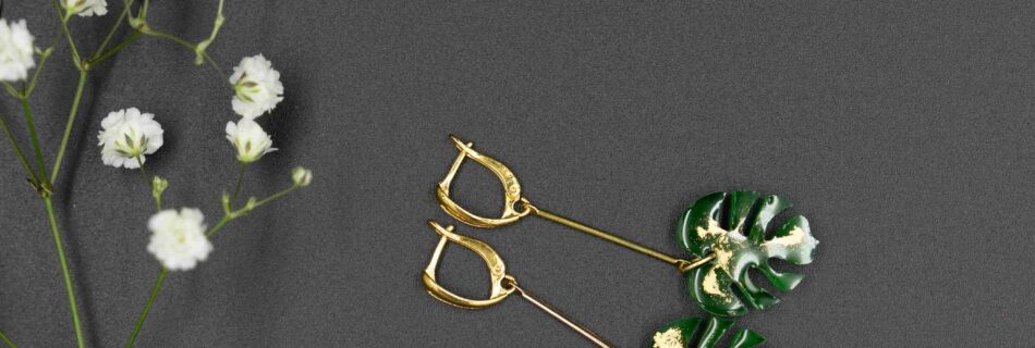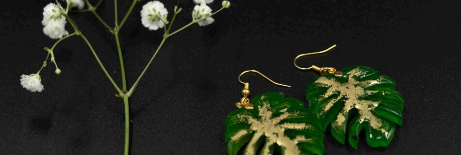 Cena: 135 PLN Numer artykułu: F9 Wymiary elementu: 3,5 x 4 cm Kolekcja: Flora Kolczyki w kształcie liścia monstery z barwionej żywicy w odcieniach zieleni i złota.Z ciekawym złotym wzorem — odważne, a jednocześnie harmonijne. Podobne