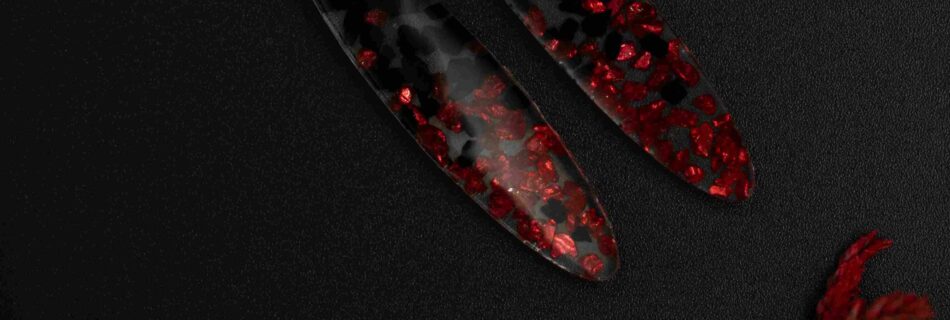 Cena: 125 PLN Numer artykułu: O12 Wymiary elementu: 5 x 25 cm Długie, owalne kolczyki z transparentnej żywicy z czarno-czerwonym kruszonym szkłem.Wyraziste i z pazurem — mocny akcent w prostej formie. Podobne